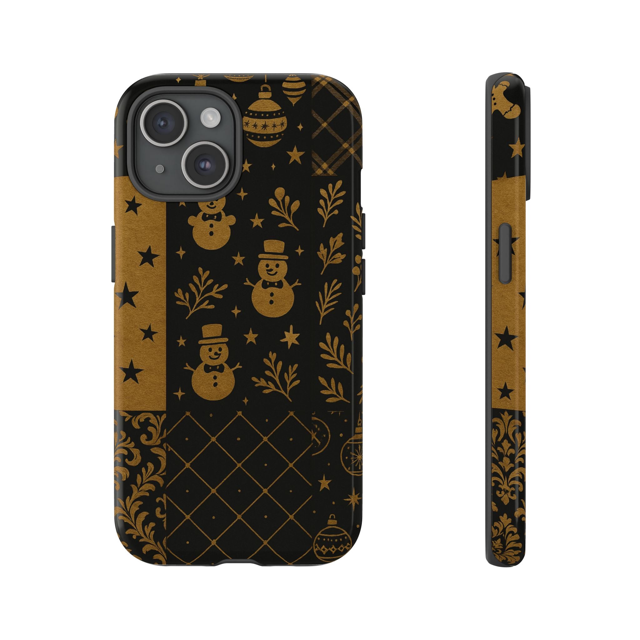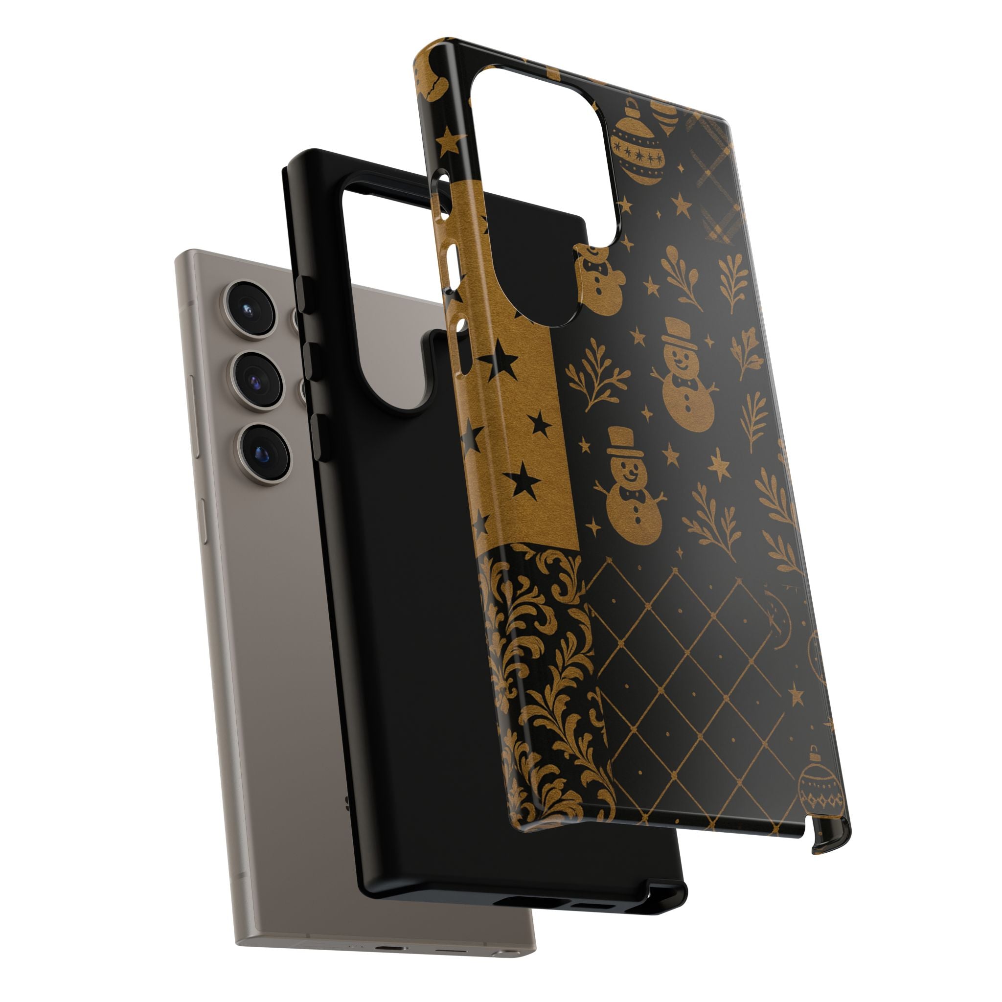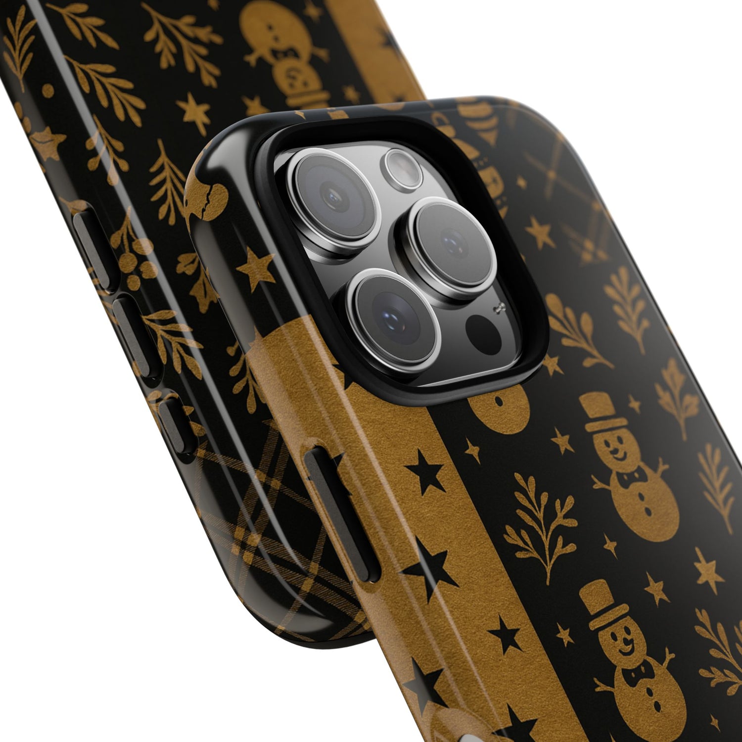 Black Festive Phone Case | Christmas Gift | Holiday Decor | Snowman Design | Tough Cases | Winter Celebration
