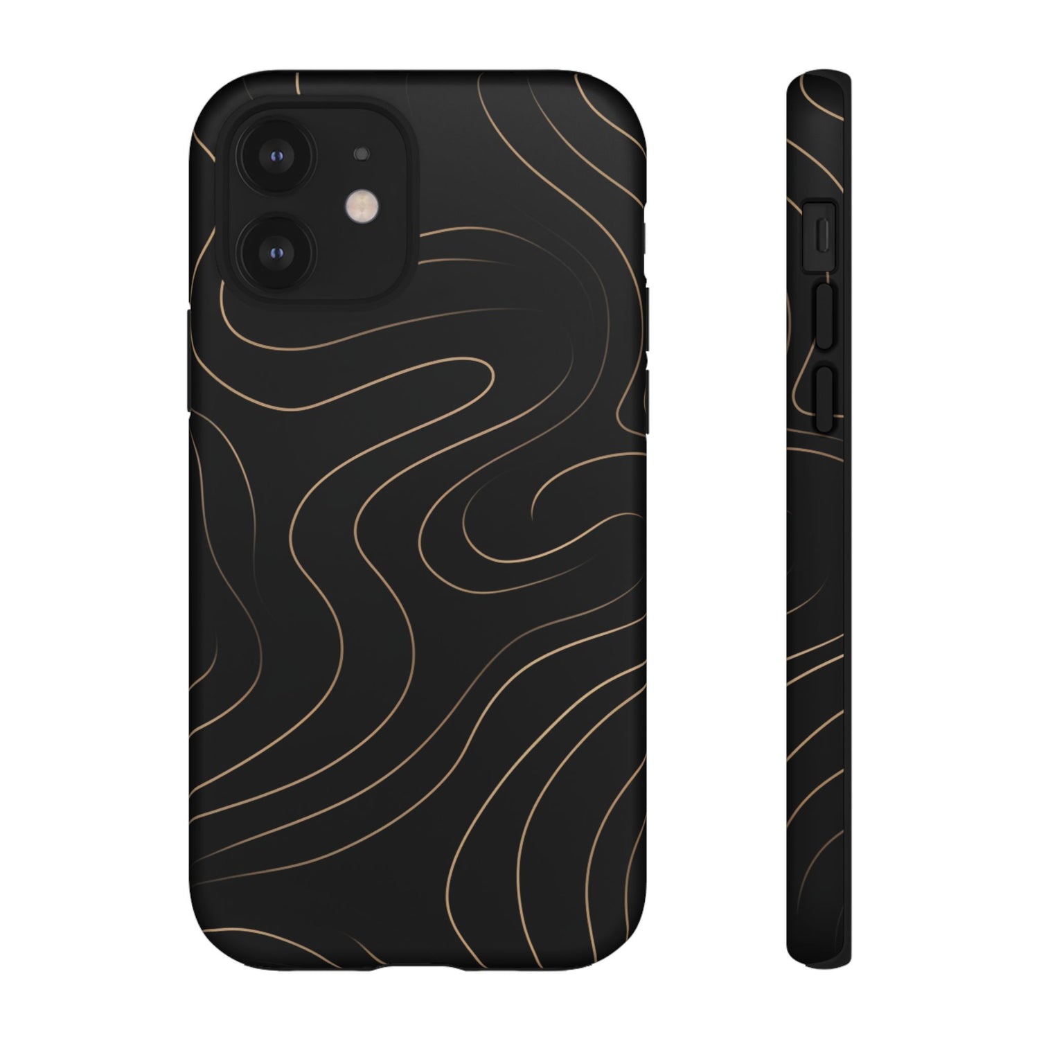 Sleek, sophisticated, and artfully understated - the Noir Topograph phone case turns minimalism into a statement. Designed with flowing gold contour lines over a deep matte-black surface, it evokes the elegance of topographic maps and the calm rhythm of natural forms. Crafted for those who appreciate design with depth, this case balances modern luxury and everyday durability. The precision-fit shell provides protection against drops and scratches while maintaining a smooth, slim silhouette. Whether you’re in the studio, the boardroom, or on the move, Noir Topograph is the perfect fusion of artistry and protection - a timeless piece for your pocket. Product features - 3D wrap for full ink density image transfer - UV protected for longterm optical quality - Durable and impact resistant materials with shock absorption - TPU silicone liner for premium finish and impact absorption - Supports wireless charging (not including MagSafe) Care instructions - Clean with a soft damp cotton or microfiber cloth (add a drop of dish soap if needed).