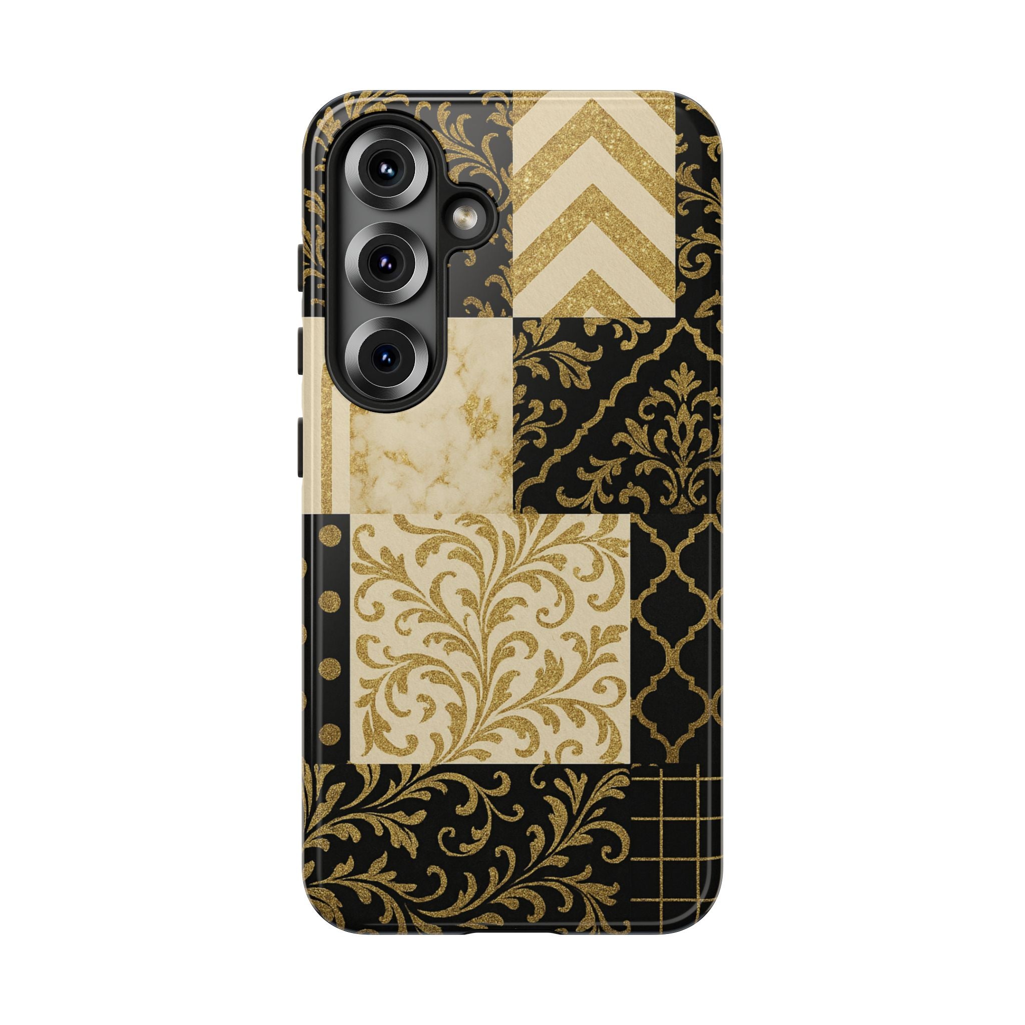 Phone Case, Luxury Black and Gold Festive Design for Christmas Gift, Holiday Decor, Tough Cases, Winter Celebration, Elegant iPhone Cover Samsung Galaxy S24 Matte