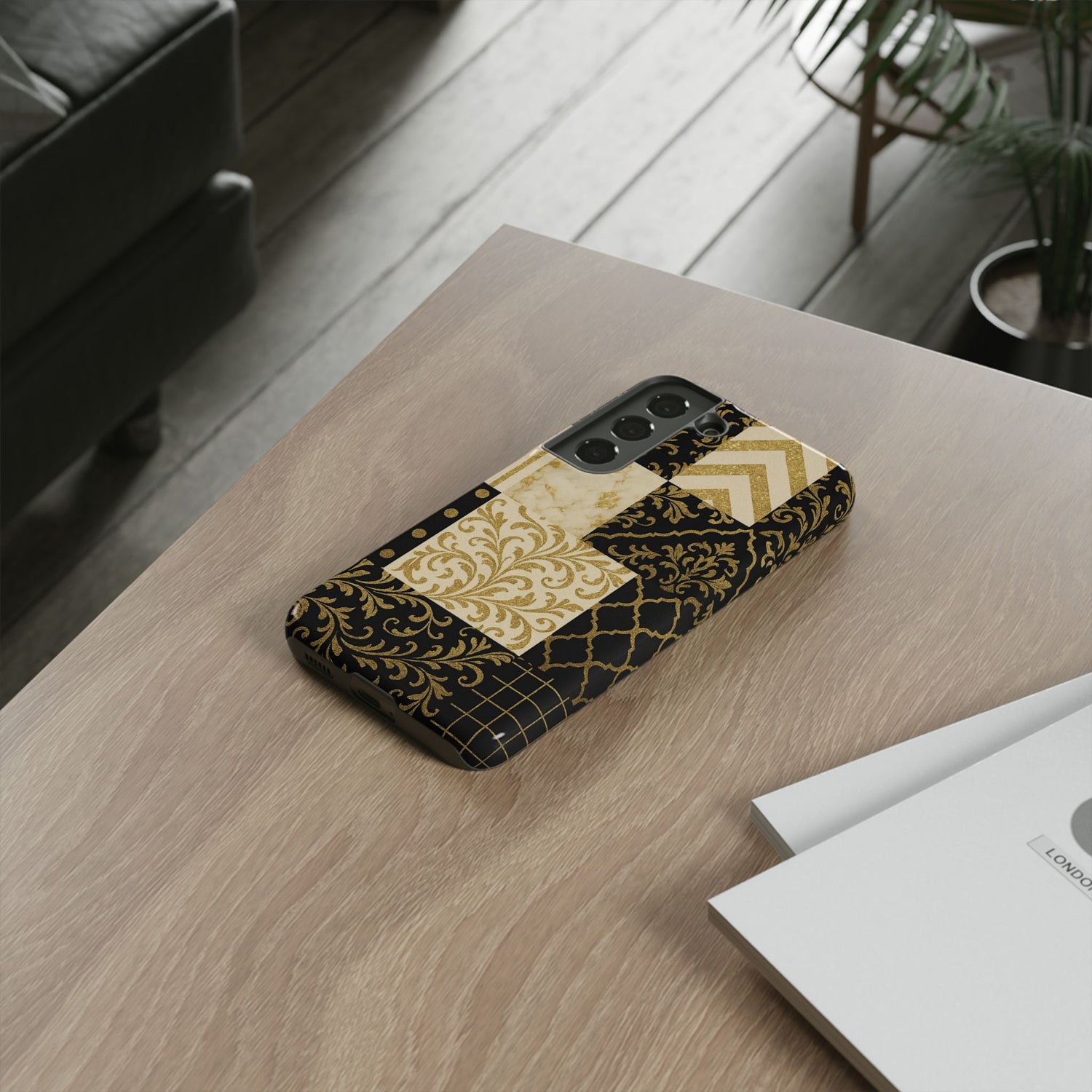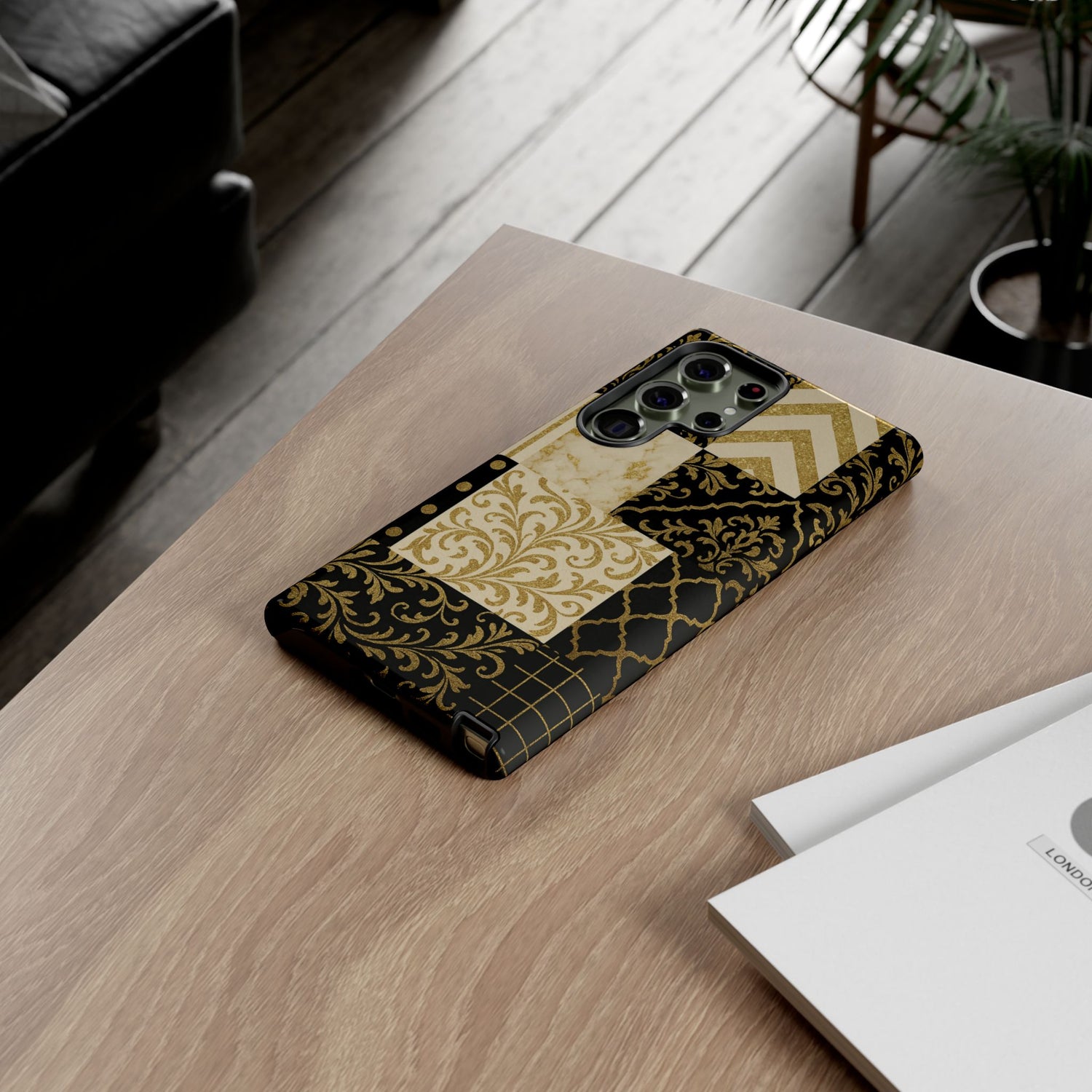 This black and gold festive phone case is the perfect Christmas gift or holiday decor. Its luxury design and tough construction make it ideal for the winter celebration season. Suitable for adults, this phone case offers full wrap-around protection with excellent resistance to outdoor weathering. It is durable, impact-resistant, and features a silicone liner for shock absorption. The design is made with high-quality materials sourced from South Korea. Product features - Full ink density wrap and image transfer - UV protected for longterm optical quality - Durable and impact resistant - Premium silicone liner for shock absorption - Supports wireless charging Care instructions - Clean with a soft damp cotton or microfiber cloth (add a drop of dish soap if needed).
