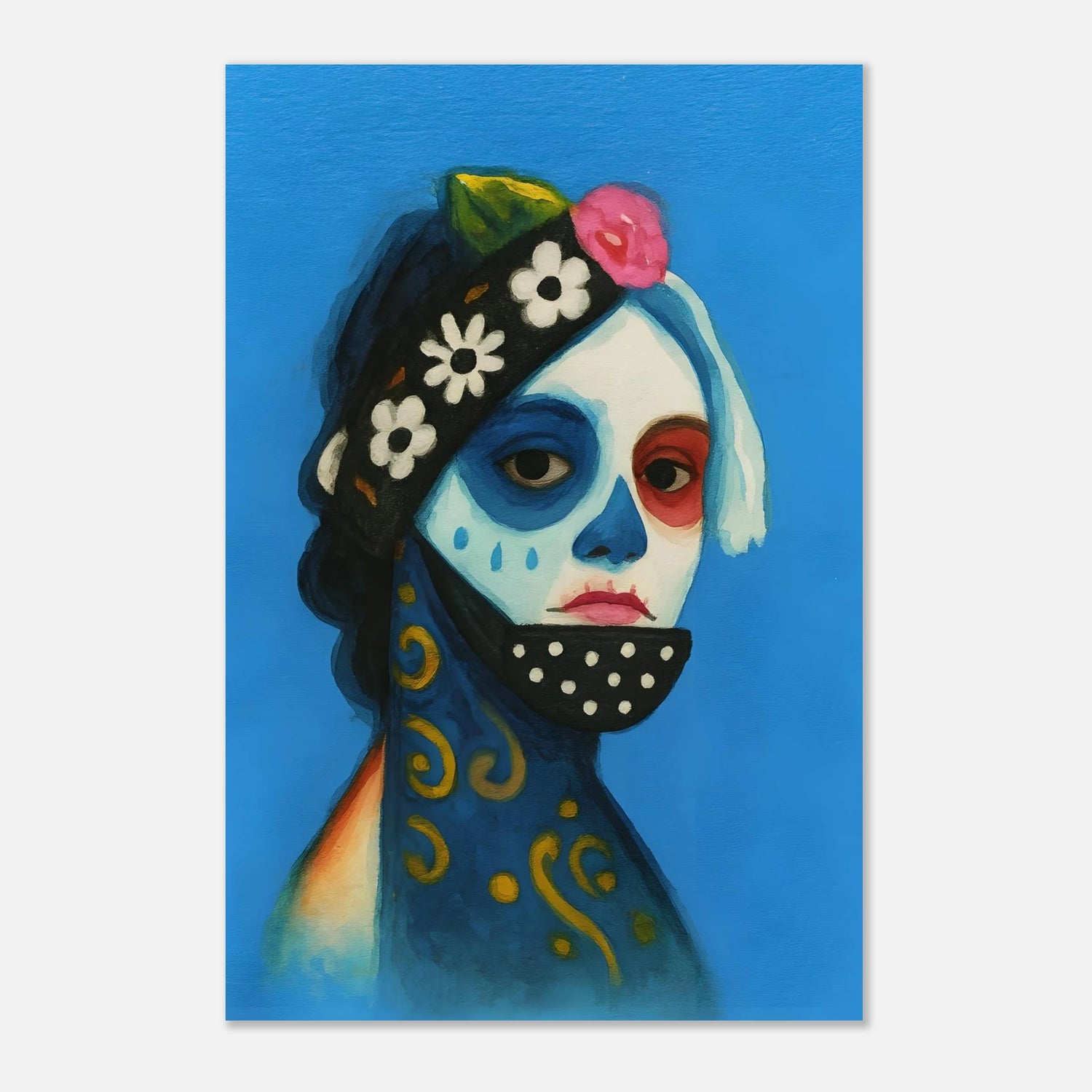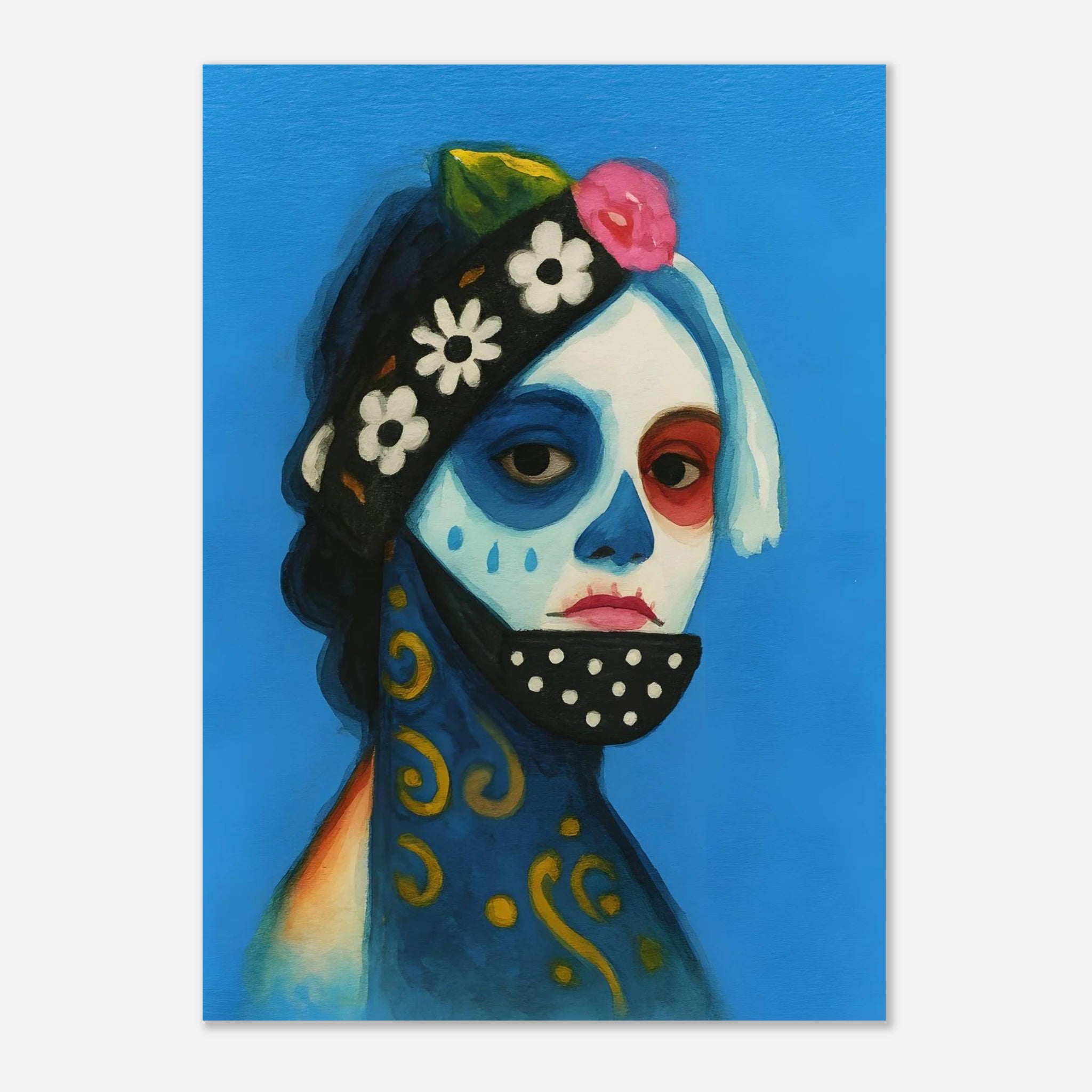 Day of the Dead Watercolor Portrait, Día de los Muertos Masked Woman Wall Art, Mexican Folk Art A3 Print, Skeleton Face Painting Poster. Celebrate the vibrant spirit of Día de los Muertos with this captivating watercolor portrait print. Featuring a masked woman adorned in traditional face paint, flowers, and vivid patterns, this artwork captures the essence of Mexican folk traditions and the symbolic beauty of honoring ancestors. Printed on premium-quality matte paper and suited for A3 aspect ratio (other sizes available), this piece is perfect for adding a bold cultural statement to your home, office, or art collection. We also sell digital version of these in separate listing. Please see our shop. Please Note: 🎨 This listing is for the PRINT ONLY. Frames are NOT included. 🎨 Key Features: - **Material**: Durable, 170 gsm (65 lb) matte paper with a smooth, non-reflective finish that enhances its aesthetic appeal. - **Sustainable Choice**: Our paper is FSC-certified, promoting responsible forest management and sustainability. - **Perfect Fit**: Available in 29 sizes in inches (for the US & CA) and centimeters (for the rest of the world) to fit any wall perfectly. - **Versatile Decor**: Whether for a nursery, playroom, or a cozy reading nook, this poster infuses charm and positivity to any space. Plus, we offer no minimum orders, which means you can choose whatever size suits your needs without fuss. Each poster is printed and shipped on demand, ensuring you receive a fresh, high-quality piece of art. Tags: day of the dead art, Dia de los Muertos print, Mexican folk art, watercolor portrait poster, masked woman painting, skeleton face art, cultural wall decor, vibrant festival print, Halloween Mexican poster, unique a3 wall art, gothic Mexican decor, blue background art, skull face illustration