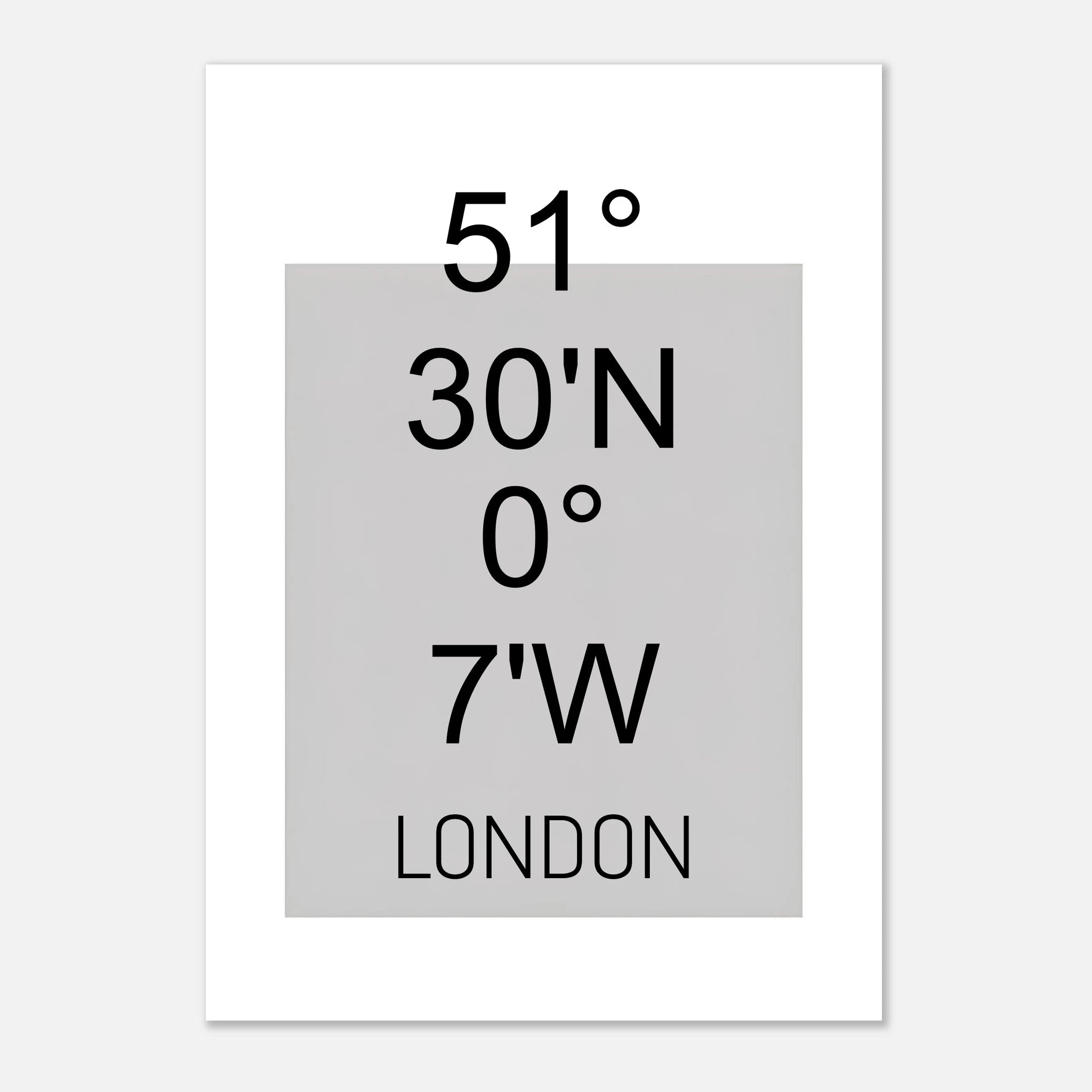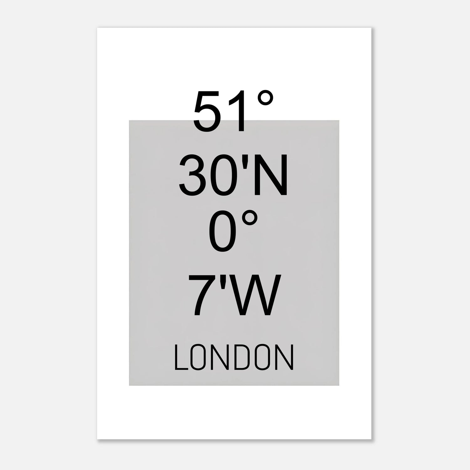 London Coordinates Poster Print | Minimalist Unframed Wall Art Decor A3 A4 A5 A2 (42 x 59.4 cm)